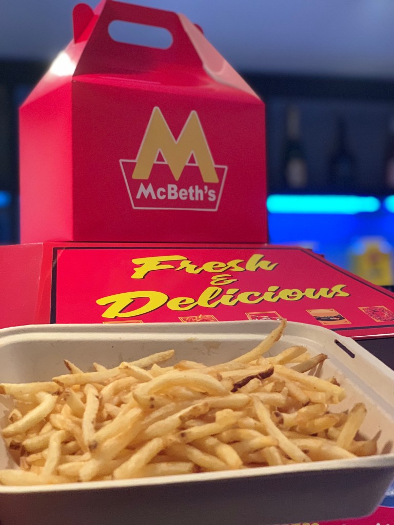 I partnered The Counter, a high-end fast food chain, to supply french fries on a daily basis for sale in the lobby. After working through a few fry-related challenges (how to keep the product crispy and fresh, the best way to bring the fresh “fast food” smell into the theatre, etc), fast food ultimately became an integral part of the production itself.